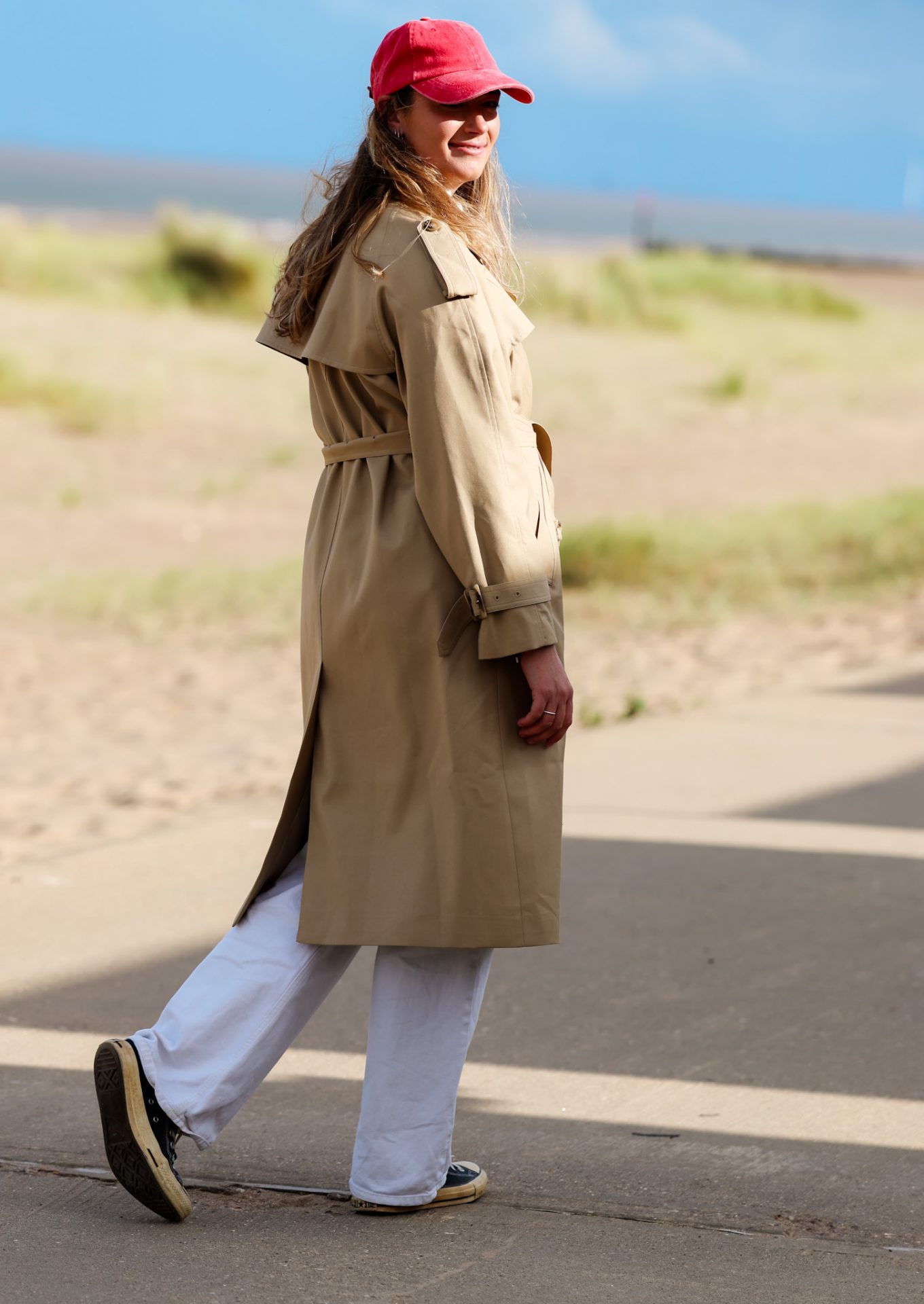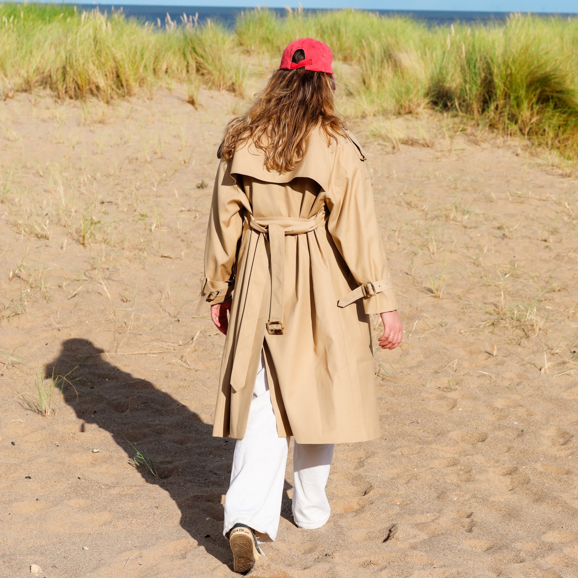 waist can be tied with ease or buckled for sharper structure, giving you styling versatility