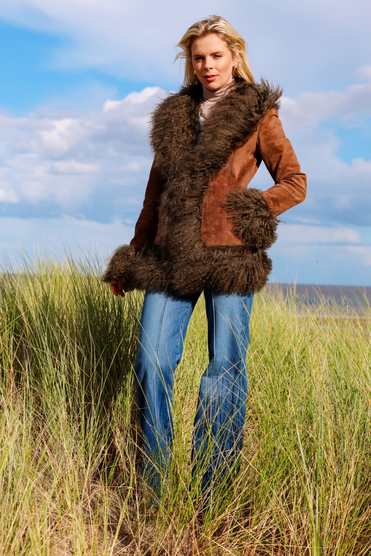 Chic, bold, and unapologetically wild, the Swifty Jacket is a hip-length masterpiece crafted from buttery, almost velvet-like suede. With its distinctive olive trim and flawless tailoring, this piece is a true head-turner, striking the perfect balance between effortless style and edgy sophistication.